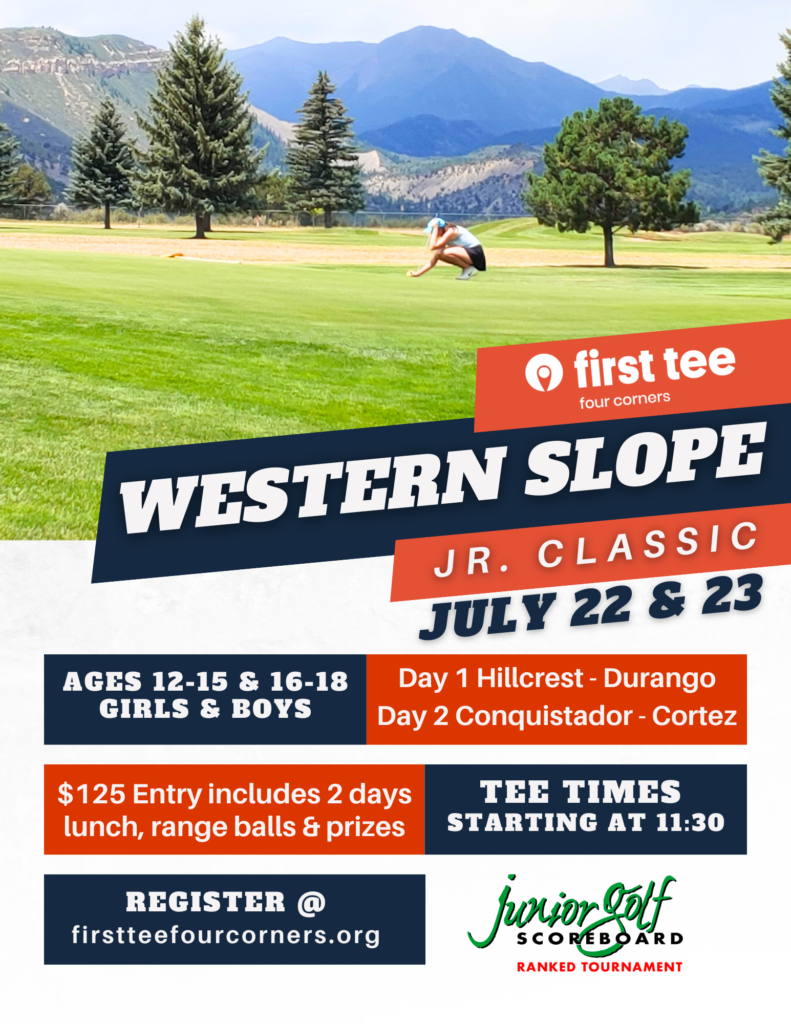 First Tee Four Corners proudly presents the Western Slope Jr. Classic, a premier junior golf tournament spanning two beautiful courses in southwestern Colorado. This nationally ranked tournament offers young golfers a chance to elevate their competitive experience while building skills, connections, and memories that last a lifetime.